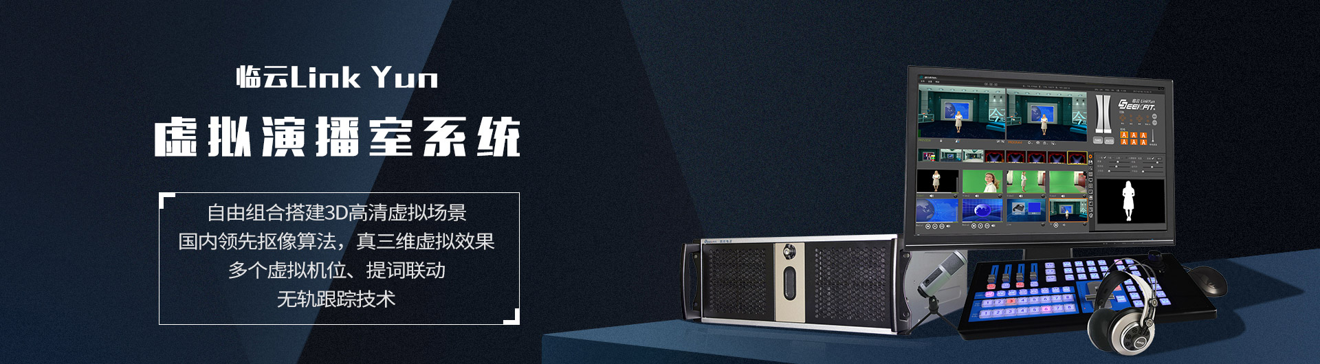 臨云 LinkYun 真三維虛擬演播室系統(tǒng)結構簡單、高度集成,一套產(chǎn)品可以獨立完成傳統(tǒng)演播室中的節(jié)目信號切換、字幕疊加、節(jié)目播出、信號錄制、虛擬布景、流媒體發(fā)布等功能。